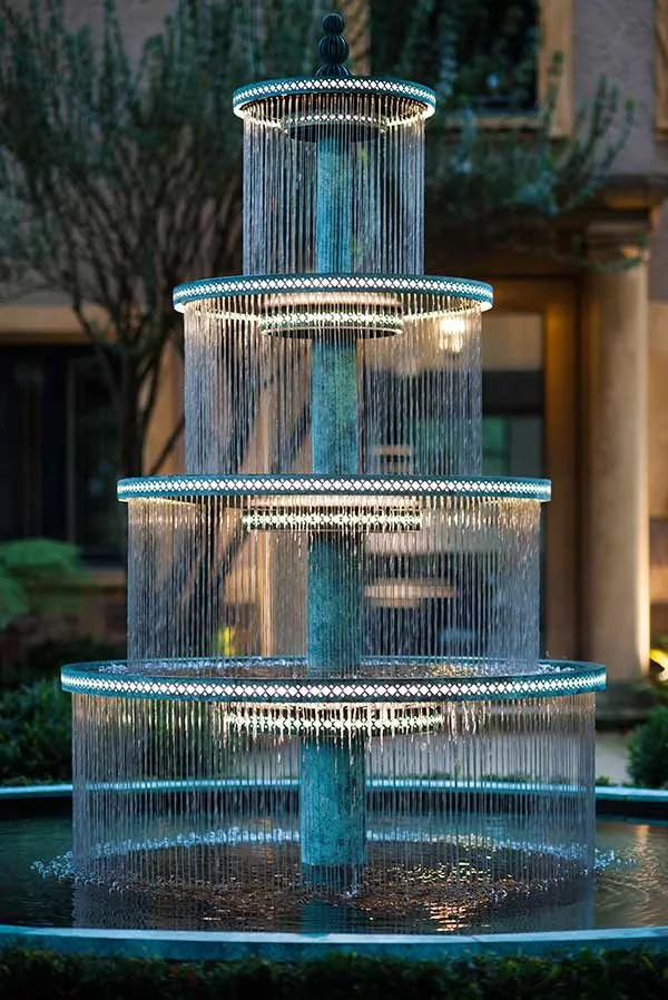 - نافورة الجدار الخشبي المدرج التى يتم تركيبها بصورة جدار رخامي بين مدخل الحديقة والمنزل، حيث يتم تركيب ألواح خشبية ملونة باللون الأسود بصورة متدرجة مائلة.