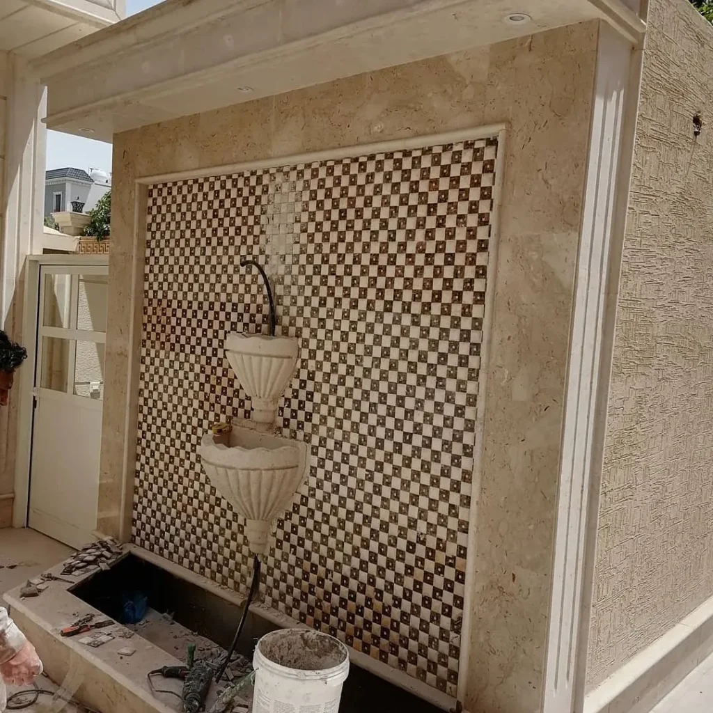 - نافورة جدار وتعد مناسبة لجدار حمامات السباحة لبعث جو من الراحة والاستجمام