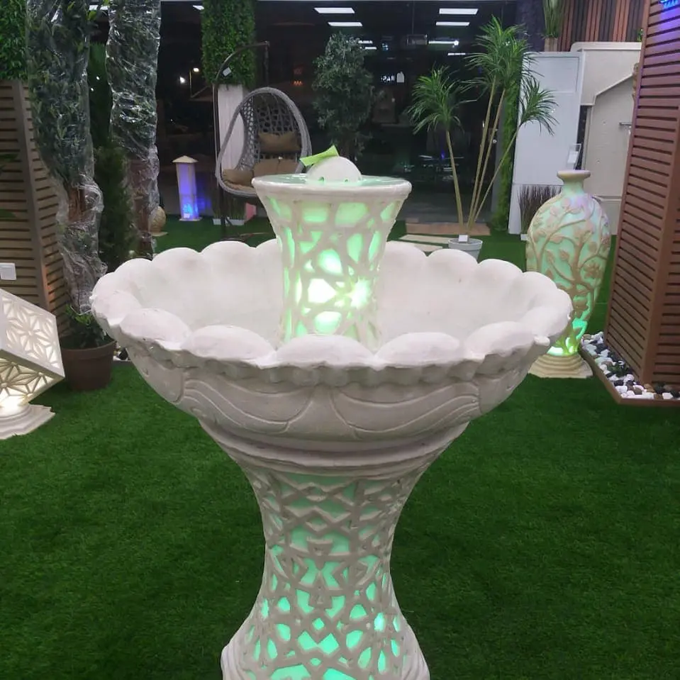 - تشكيلة كبيرة من أحدث تصاميم النوافير التي تتنوع بين العادية والملونة بالإضاءة بمختلف الديكورات.